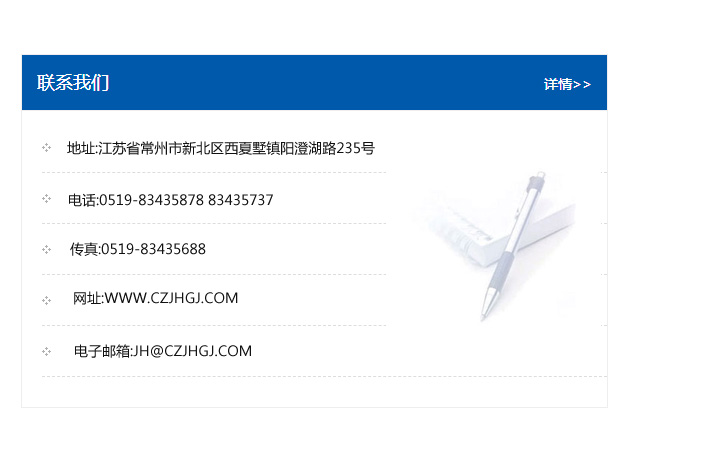 傳真:0519-83435688    郵編:213135    網址:WWW.czjhgj_com.dongsenjituan.com    電子郵箱:JH@czjhgj_com.dongsenjituan.com